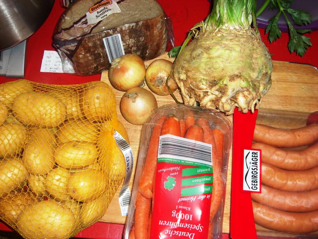 Außerdem bekomme ich nicht sehr oft die Gelegenheit, was Sächsisches zu kochen. Und überhaupt ist es das erste Mal seit der WM, dass man mal wieder zusammen Fußball schaut und auch was dazu kocht. Aber bei Dresden bzw. Sachsen fällt mir so spontan jetzt nur Dresdner Christstollen ein. Dank chefkoch.de finde ich dann aber doch einige Rezepte. Ich entscheide mich für die sächsische Kartoffelsuppe. So eine Suppe ist einfach zuzubereiten, kräftig und lecker. Na dann los.
